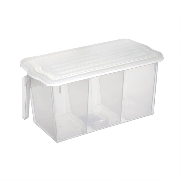 Food Grade Plastic Refrigerator Container Square Handle Food Storage Organizer Boxes, Storage Basket Jar with 3 Smaller Bins Boxes and Lid