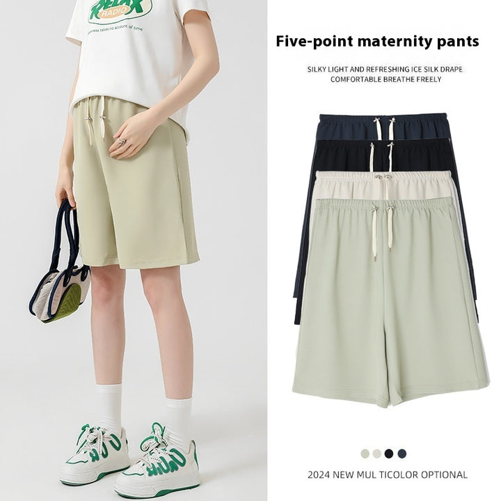 Pregnant Women's Cropped Shorts Women's Summer Outer Wear Thin High Waist Wide Leg